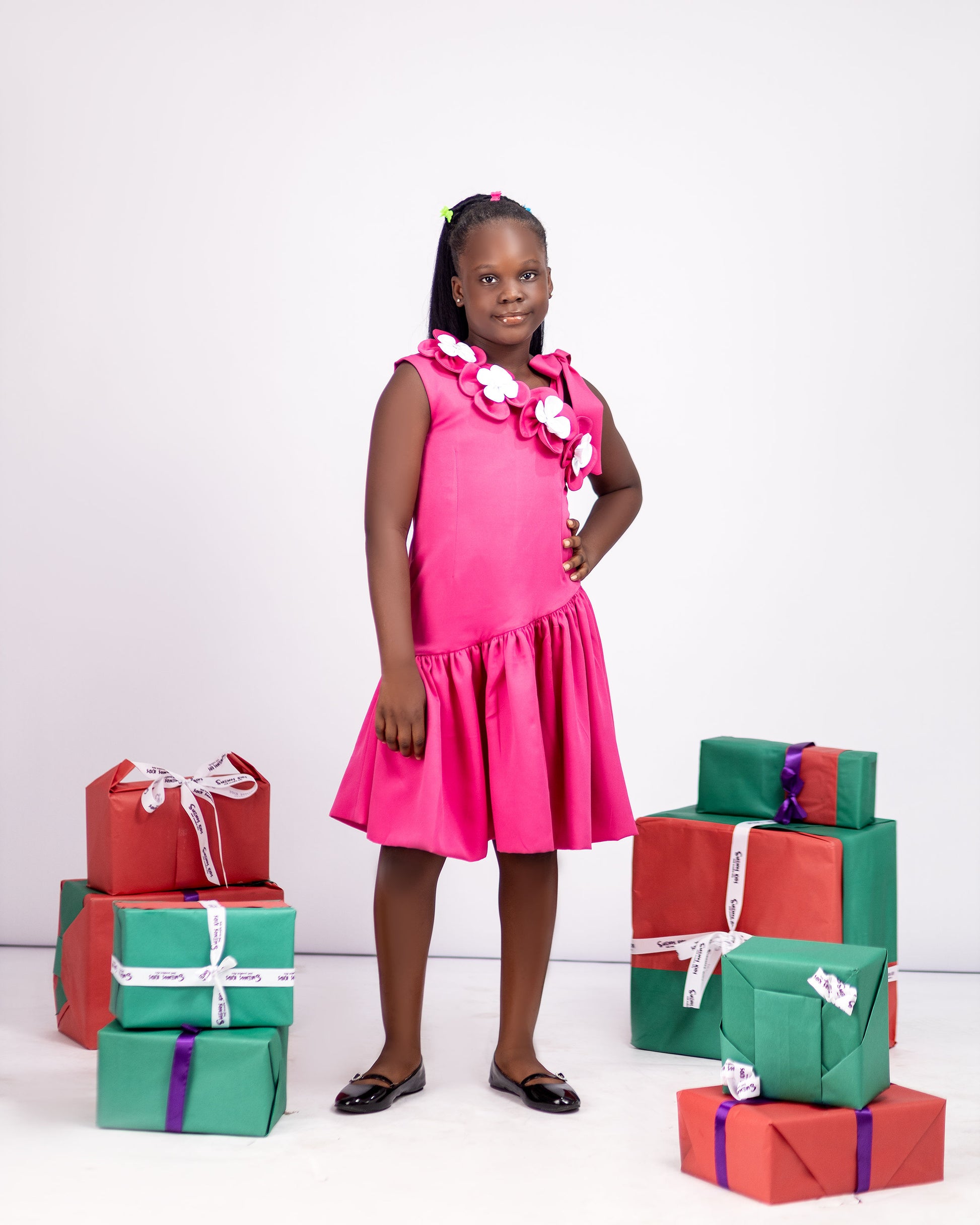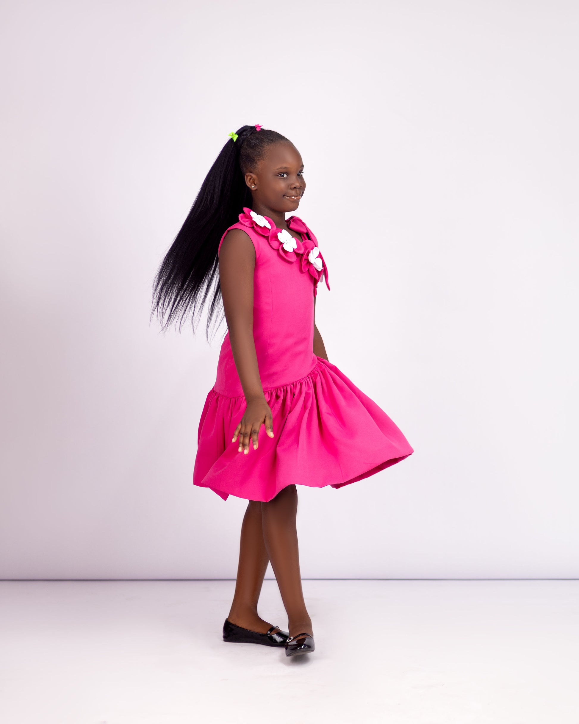 A charming cotton dress featuring a floral-adorned neckline and softly gathered skirt. Comfortable yet elegant, itβs perfect for daytime celebrations and joyful family portraits.