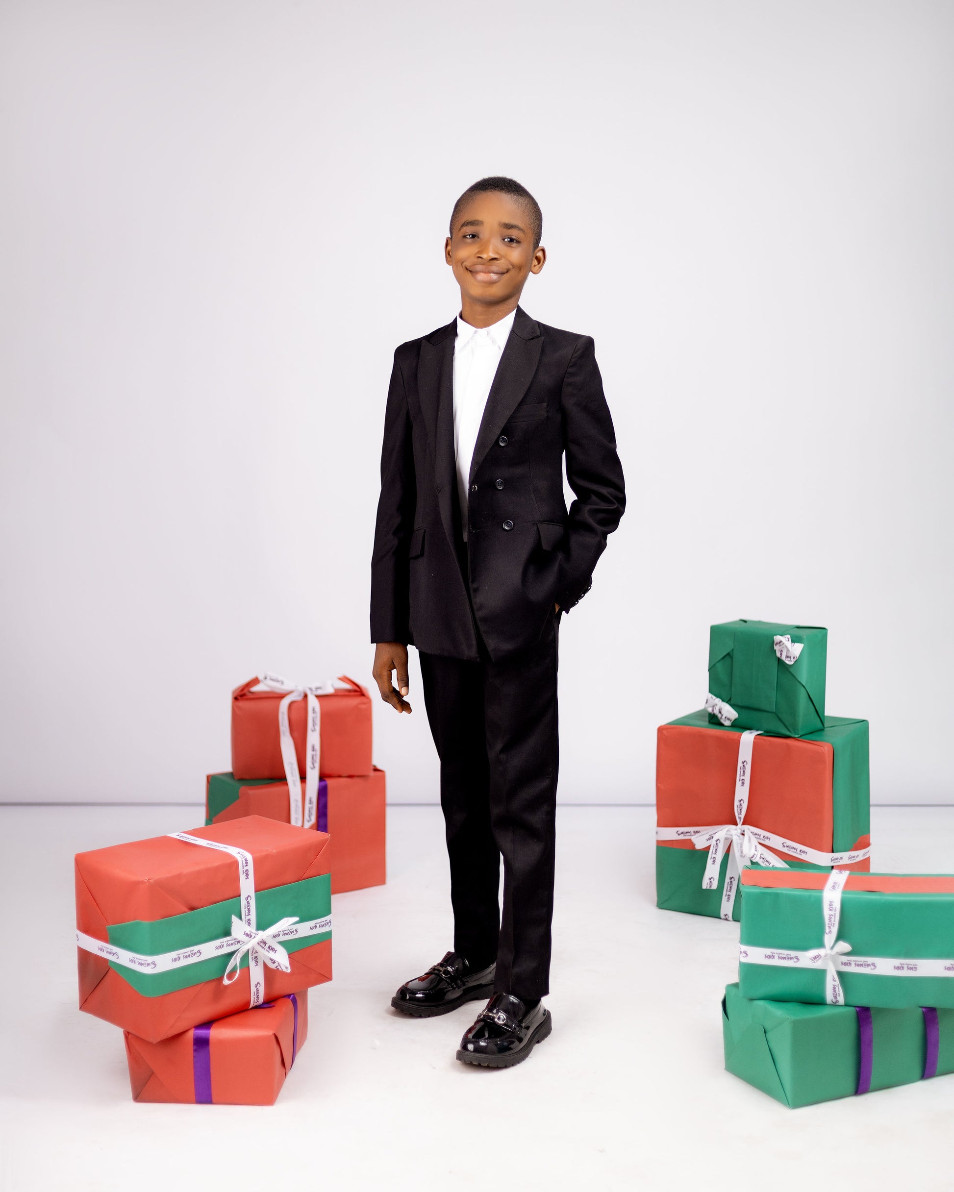 A luxurious boysβ holiday blazer crafted in rich velvet and finished with a detachable floral lapel accent. Perfect for festive portraits, weddings, and elegant gatherings.